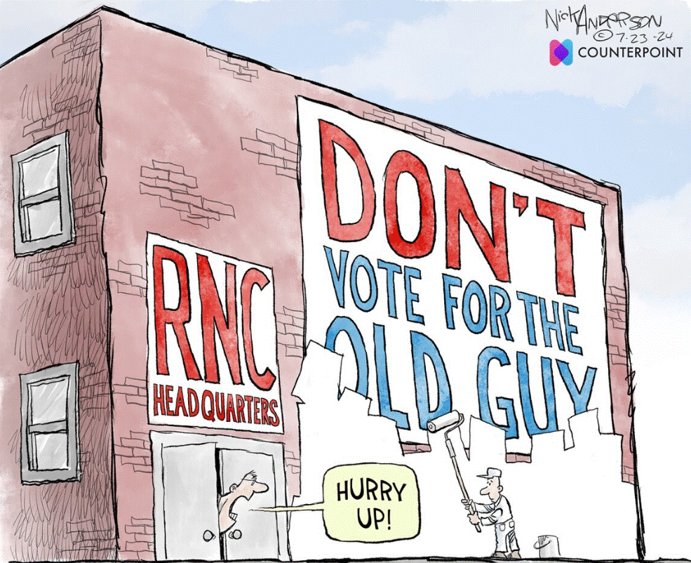 Friday Funny #698 July 26 2024 By Barry Paton | July 26, 2024 - 5:00 am |July 25, 2024 Uncategorized American Politics – what a s – show Almost there, Have a good one. Cheers, Barry. Bookmark the permalink.