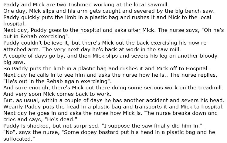 Friday Funny #728 March 07 2025 By Barry Paton | March 7, 2025 - 5:00 am |March 6, 2025 Uncategorized Comments Off on Friday Funny #728 March 07 2025 Two Irishmen Have a safe weekend