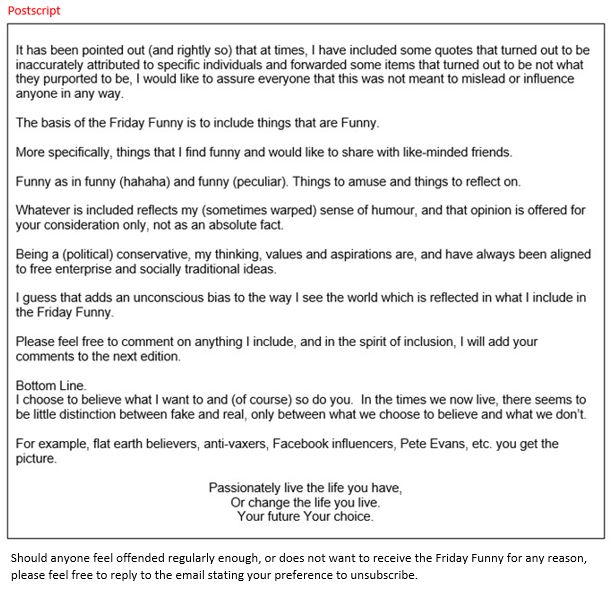 Welcome to the first Friday Funny online.